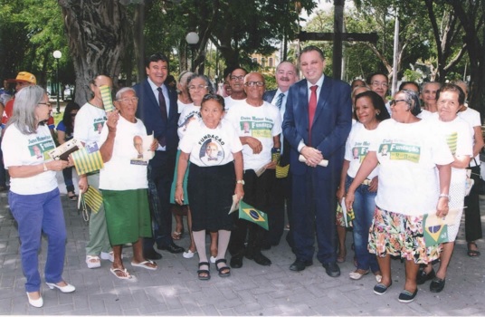 as autoridades governamentais mencionadas veem-se ladeadas por idosos