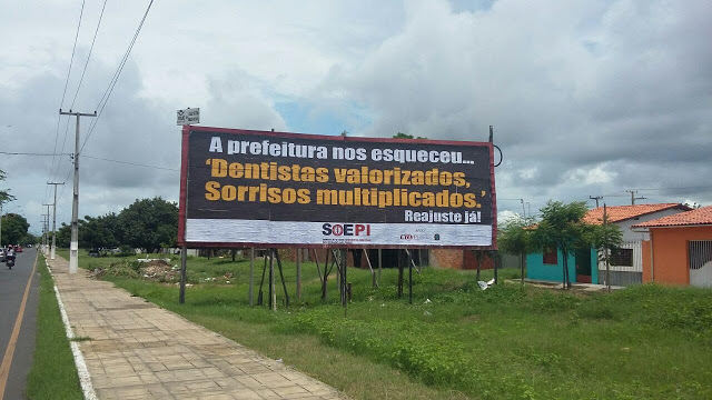 Um outdoor reivindicando a valorização dos dentistas do município de Parnaíba foi colocado na Avenida Três de Maio, próximo ao colégio Raquel Magalhães, no bairro São Francisco da Guarita com a mensagem: “A Prefeitura nos esqueceu … Dentistas Valorizados, Sorrisos Multiplicados”.
