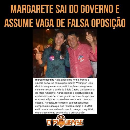 A deputada federal Margarete Coelho anunciou que sua irmã, Sádia Castro, deixa o Governo do Estado e agora vai focar na oposição.