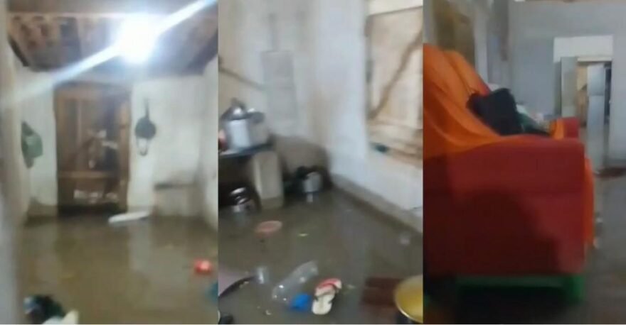 No registro, é possível observar que a água chega até o joelho da mulher, que mostra os pertences boiando nas águas por toda a casa.