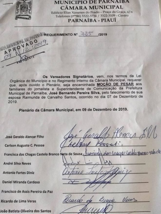 A família de Raimunda de Carvalho Santos, ainda consternada com seu prematuro desaparecimento, ocorrido dia 7 de dezembro, agradece a todos os vereadores de Parnaíba pela Moção de Pesar aprovado no Plenário daquela Casa, externador condolências pelo ocorrido.