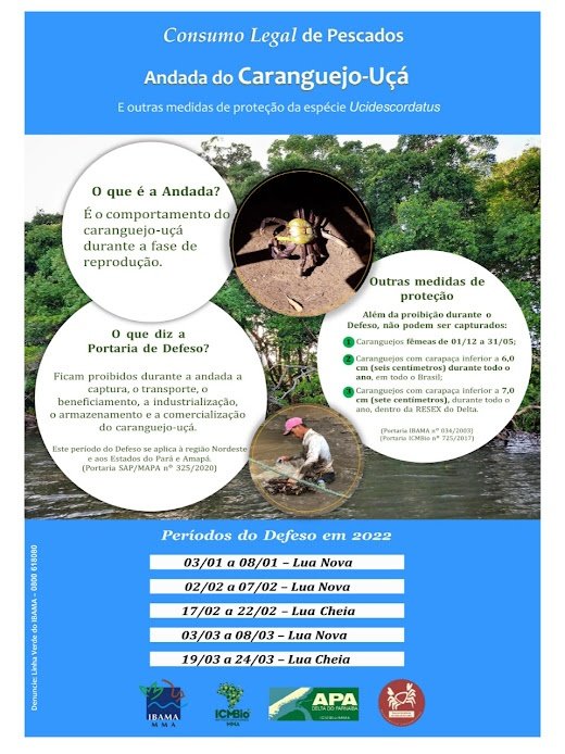 Informamos que a Declaração de Estoque deve ser feita até o dia 1° de fevereiro, véspera do 2° período do Defeso do Caranguejo-Uçá, que será de 02 a 07 de fevereiro;