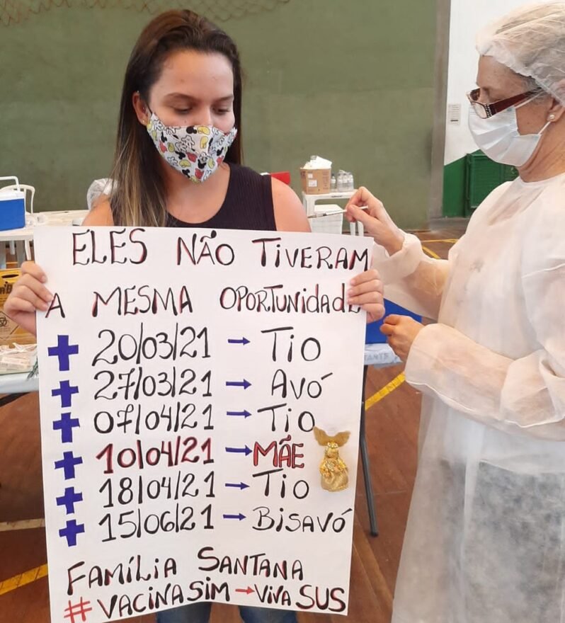 Dos seis parentes, apenas sua bisavó já havia sido imunizada quando morreu. A jovem contou que uma das razões para sua mãe ter pedido que ela ficasse em Santos foi o fato de a vacinação estar mais acelerada na região.