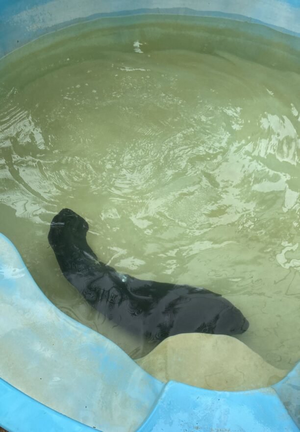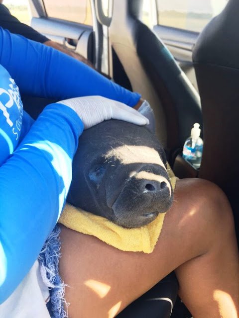 Adriano Ricardo advertiu que a órfã de peixe-boi precisava de tratamento especializado urgente, que só é disponibilizado pelo Centro de Mamíferos Aquático, para que o animal pudesse ser cuidado e reabilitado para retorno ao habitat natural.