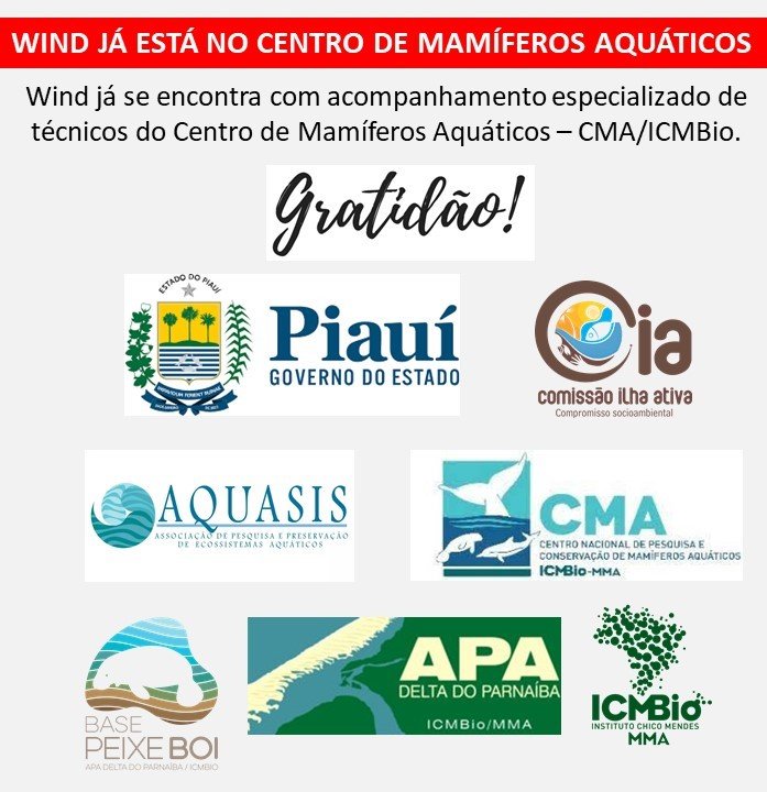 Wind se perdeu da mãe e foi encontrada próximo da Área de Proteção Ambiental (APA) Delta do Parnaíba, na praia de Macapá. O animal foi resgatado pela equipe da Comissão Ilha Ativa, instituição que atua na preservação de espécies na região do Delta. Wind ficou numa piscina, na base do ICMBio, no município de Cajueiro da Praia, sendo alimentada e medicada.