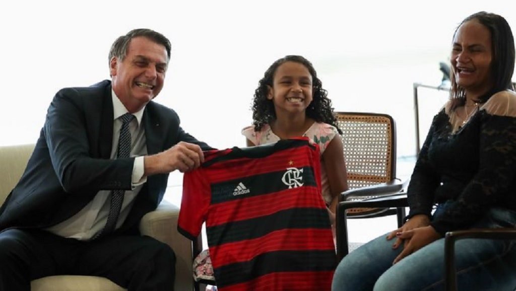 O presidente relembrou o episódio e revelou que deu uma camisa do Flamengo de presente para a estudante. Bolsonaro disse ainda que pretende levar a filha, que tem a mesma idade de Yasmin, ao encontro de sábado para que as duas se conheçam.
