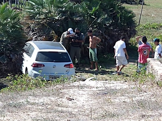 O veículo Golf envolvido na morte do operário, desceu o aterro após a colisão com a moto da vítima