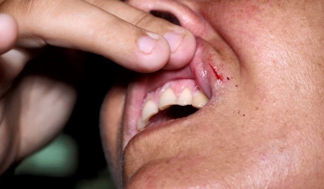 Boca da árbitra ficou ferida devido às agressões — Foto: Kairo Amaral/TV Clube