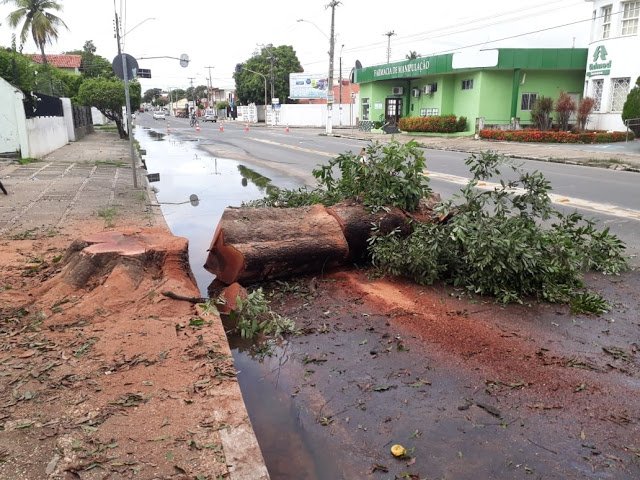 A prefeitura de Parnaíba cortou também duas árvores em frente a uma clínica, na Avenida Chagas Rodrigues. Outra árvore que ameaçava cair na rua Almirante Gervásio Sampaio. Fonte: BPessoa. Foto: BPessoa. Edição: APM Notícias.