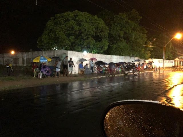 No início da noite desta segunda-feira (07), filas enormes começaram a se formar em frente a Escola Estadual Janete Souza, no bairro Joaz Souza. A situação ficou ainda pior devido a chuva que caiu sobre a cidade nesta noite, expondo as pessoas além da humilhação, ao risco de doenças respiratórias e infecciosas.