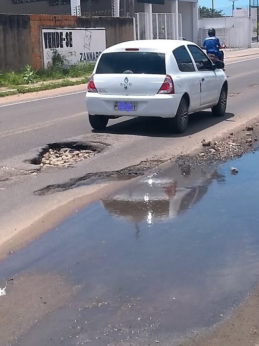 Buraco perigoso em Parnaíba na rodovia de acesso à cidade de Luís Correia, entre a New Land e Alemanha Veículos.