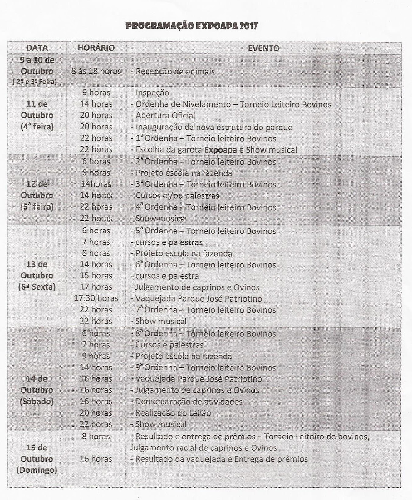 oficial da 36ª Expoapa (Exposição Agropecuária de Parnaíba) e a 5ª Feira do