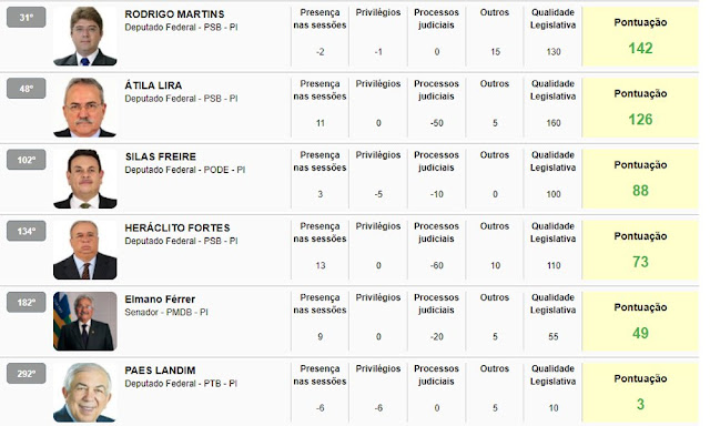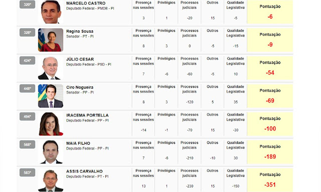 Site aponta os melhores e piores políticos do Piauí em 2017
