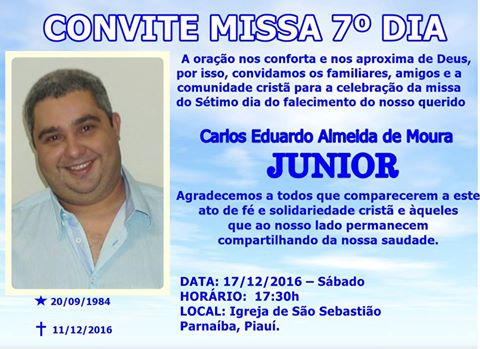 CARLOS EDUARDO JÚNIOR: MISSA DE 7º DIA