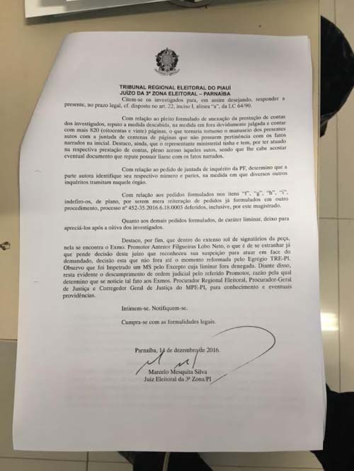 Veja despacho do Juiz: