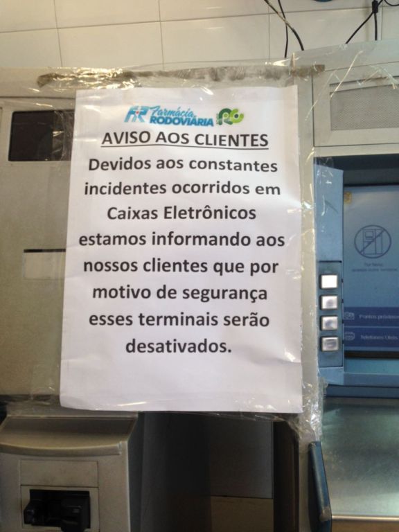 Caixas Eletrônicos do Banco do Brasil foram desativados na farmácia Rodoviária em Parnaíba por determinação da própria empresa, devido aos incidentes ocorridos recentemente na cidade.