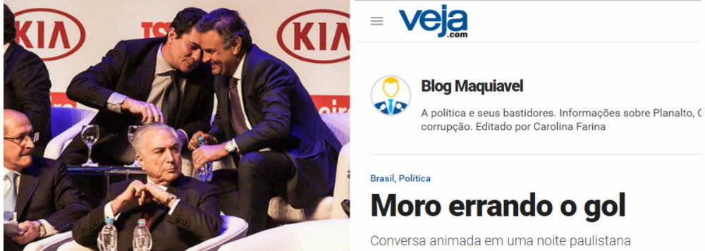 Veja ataca conversa no pé do ouvido entre Moro e Aécio