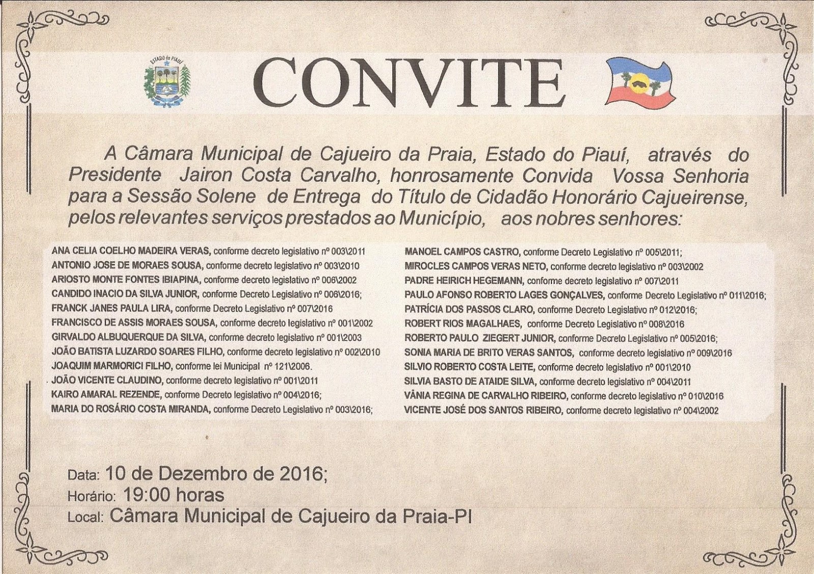 O convite veio em reconhecimento ao trabalho de Mão Santa na expansão do ensino Universitário no Piauí e na sua luta pela criação da Faculdade Federal do Delta do Parnaíba.