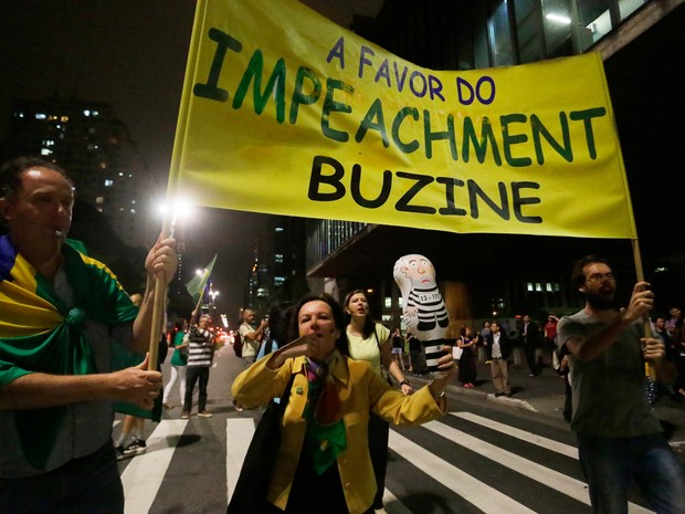 Um grupo comemorou na Avenida Paulista na noite desta quarta-feira (2) o pedido de impeachment da presidente Dilma Rousseff (PT), aceito pelo presidente da Câmara dos Deputados, Eduardo Cunha (PMDB-RJ). Os manifestantes levaram faixas para o vão livre do Masp e chegaram a bloquear duas faixas da via.