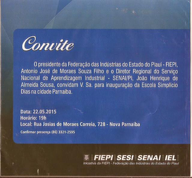 “Estamos pleiteando a restauração do prédio onde hoje é a Biblioteca Municipal e o Instituto de Genealogia. Em Parnaíba vamos construir duas obras novas: um prédio do SENAC e um prédio do SESC. Essas duas grandes obras vão ser construídas em forma de palácios, aqui na BR 343, que liga Parnaíba a Luiz Correia, ainda este ano”, informou o empresário.