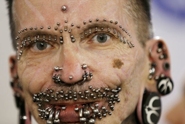 Um participante em particular impressionou o público da Convenção de Tatuagem de Atenas, na Grécia, neste domingo (17). Rolf Buchholz, de 56 anos, exibiu o rosto repleto de perfurações, principalmente na região da boca e dassobrancelhas.