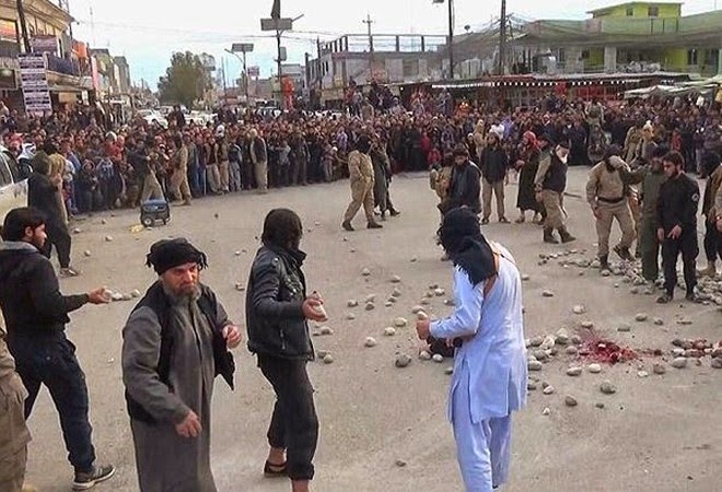 Fotos exibidas pelo jornal The Mirror, mostra um dos jihadistas llendo uma mensagem afirmando que a mulher e o homem, que têm cerca de 20 anos, cometeram “fornicação”, mantendo relações sexuais antes do casamento.