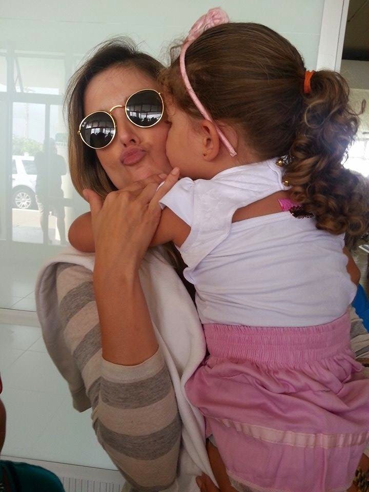 | Flávia retribui o carinho dos fãs com beijos e abraços |