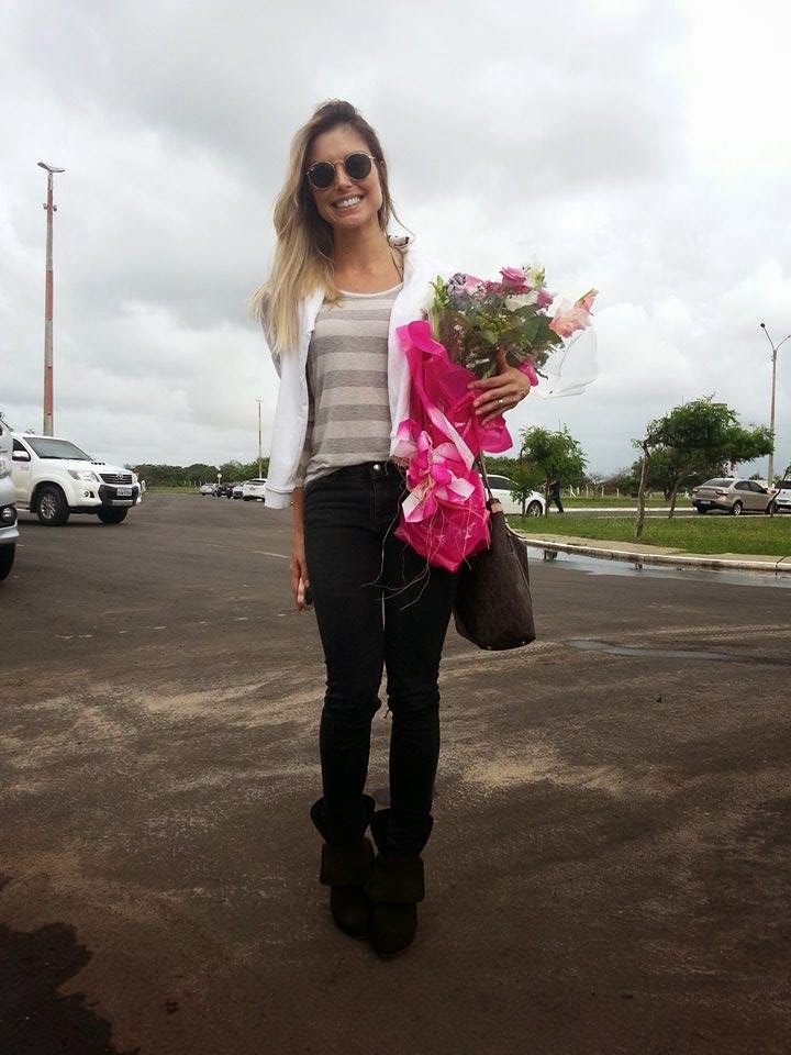 Assim que Flávia apareceu na sala de desembarque do aeroporto, foi cercada por fãs que lhe entregaram flores de presente e posaram pra fotos. Entre os admiradores, estavam não somente crianças, mas muitos adultos, como a vereadora Neta Castelo Branco, que saudou a intérprete com um buquê de rosas.