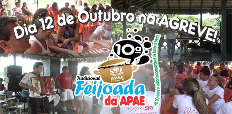 10ª tradicional Feijoada da APAE, dia 12 de outubro na AGREVE, venha participar!!!