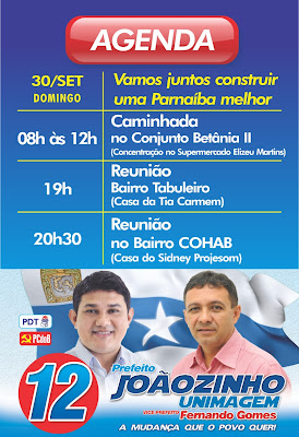 AGENDA DO CANDIDATO A PREFEITO JOÃO UNIMAGEM PARA ESTA SEXTA FEIRA