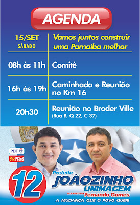 AGENDA DO CANDIDATO A PREFEITO JOÃOZINHO UNIMAGEM PARA ESTA SEXTA FEIRA