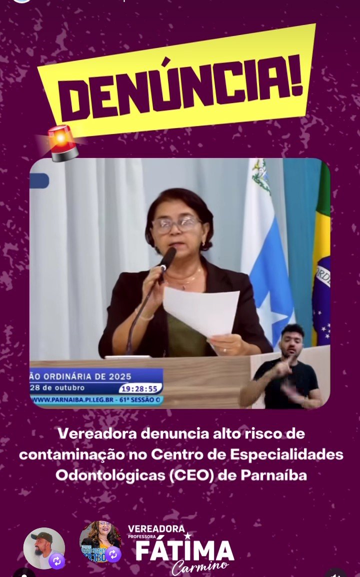 Durante a sessão da Câmara Municipal de Parnaíba, a vereadora Fátima Carmino fez uma grave denúncia sobre as condições do Centro de Especialidades Odontológicas (CEO) do município.