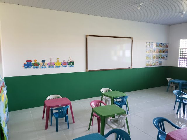 | A escola já recebeu todo o mobiliário e está pronta para receber as crianças |