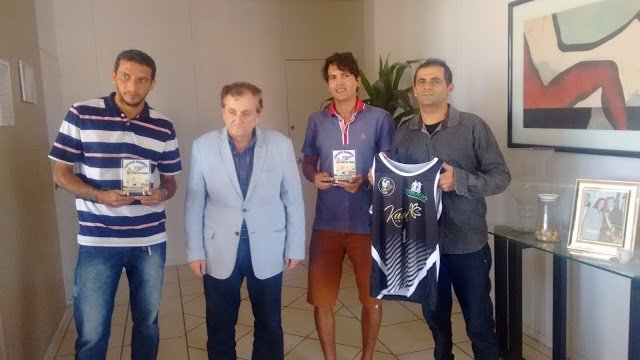 Os esportistas Anderson Pires e Carlos Eduardo, que acabam de se sagrar campões do Circuito Piauiense Speedo de Vôlei de Praia realizado em Teresina, promovido pela Federação Piauiense de Vôlei no final de semana, foram recebidos na manhã dessa segunda-feira (21) pelo prefeito Mão Santa, a quem solicitaram apoio com uma melhor estrutura para em outros eventos poderem representar melhor a cidade, conforme salientou Anderson Pires.