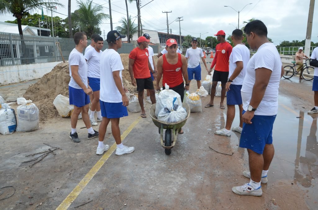 Em frente à Capitania dos Portos do Piauí, unidade da Marinha do Brasil na avenida Nações Unidas, os marinheiros e soldados do Corpo de Bombeiros passaram a manhã desta sexta-feira colocando sacos de areia e pedras no buraco que abriu na pista e comprometeu a mureta do cais em frente a uma escola.