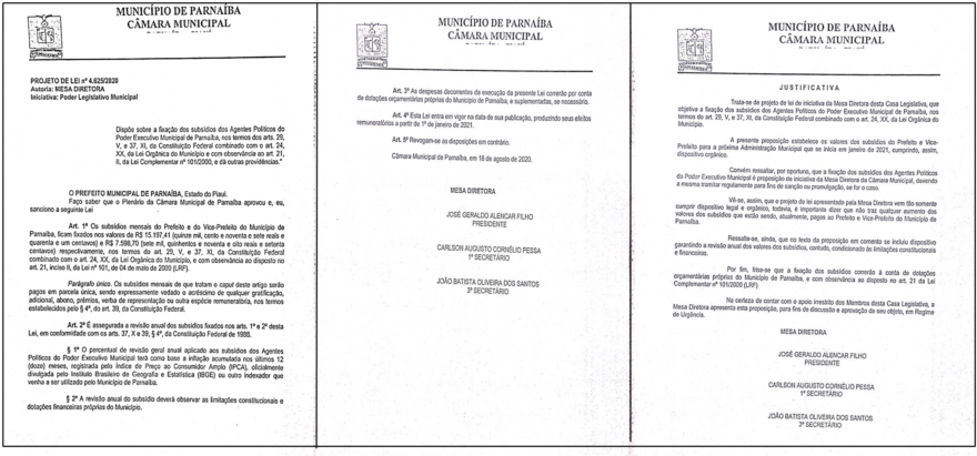 A Câmara municipal informou que, na verdade, o que houve foi a aprovação a fixação dos subsídios dos agentes políticos dos Poderes Executivo e Legislativo, para a nova legislatura de 2021-2024. Após a aprovação de ambos os projetos, as leis entrarão em vigor a partir de 1º de janeiro de 2021.