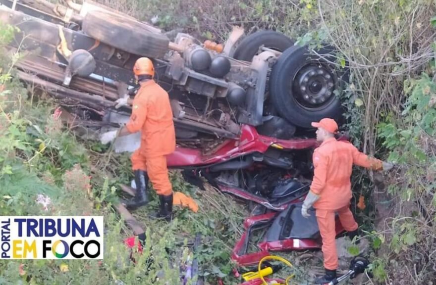 A vítima conduzia o caminhão com carga de esterco, quando perdeu controle e desceu ribanceira em uma curva. Jurivan ficou preso às ferragens.