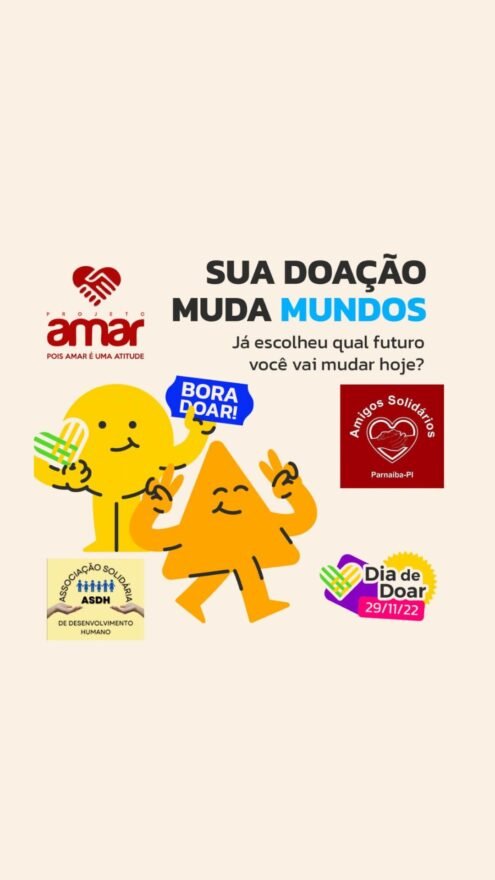 Estamos trazendo essa campanha para Parnaíba representada por três organização da sociedade civil: *Amigos Solidários de Parnaíba * Projeto Instituto Amar * ASDH – Associação Solidária de Desenvolvimento Humano.
