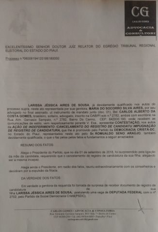 O candidato a governador ROMUALDO SENO Presidente Estadual do Partido da Democracia Cristã (DC) e atual concorrente ao Cargo de Governador do Piauí registrou uma denúncia contra uma jovem incapaz que ele mesmo, segundo a família, de forma irregular, colocou como candidata a deputada federal.