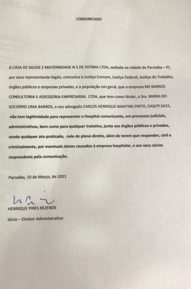 O HNSF já teve toda a sua estrutura revisada pelas duas equipes e está com os leitos prontos. No entanto, a empresa que fornecia oxigênio para a Prefeitura de Parnaíba retirou o tanque anteriormente instalado no hospital tendo em vista o final do contrato com a municipalidade. Vale ressaltar que é imprescindível, neste momento, a instalação de novo tanque de oxigênio.