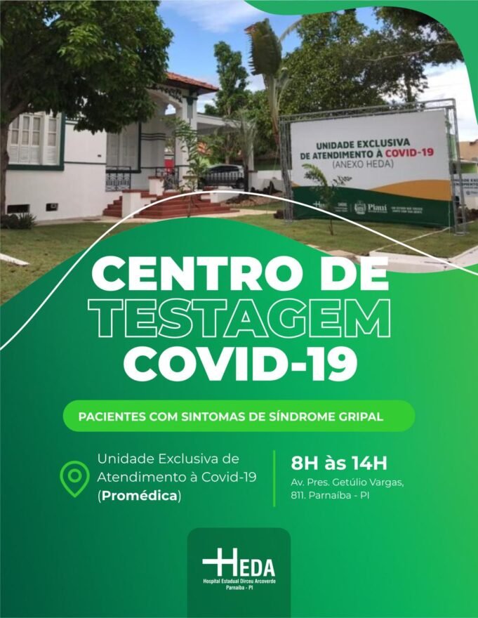 O anexo do Hospital Estadual Dirceu Arcoverde (HEDA), localizado à Avenida Presidente Vargas, 811, Bairro do Carmo, que está funcionando também como Centro de Testagem para a Covid-19, atende em torno de cem pessoas diariamente, que procuram pelo serviço. O objetivo da Secretaria de Saúde do Piauí é ampliar a oferta de exames e realizar a busca ativa de pessoas com sintomas gripais e que podem estar com Covid-19.