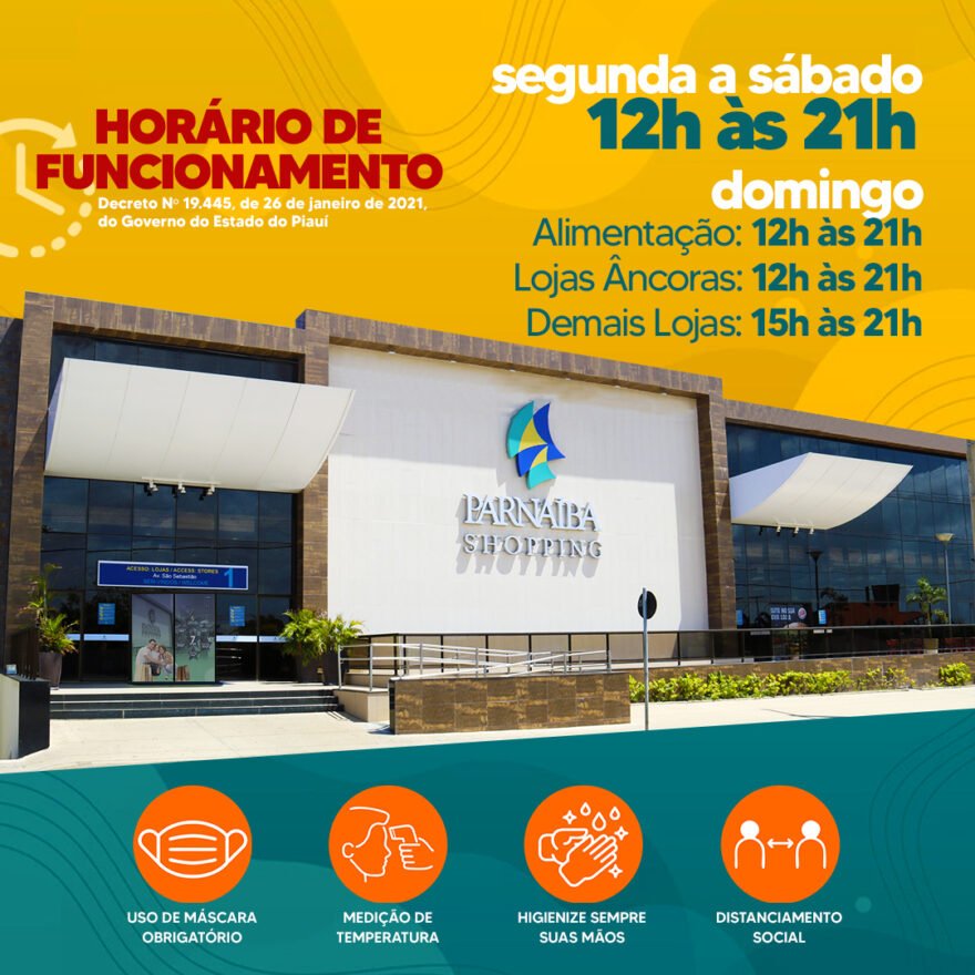 Em respeito ao Decreto Nº 19.445, de 26 de janeiro de 2021, do Governo do Estado do Piauí, com medidas para conter o avanço da Covid-19, a partir de hoje (27/01) o Parnaíba Shopping está com novo horário de funcionamento.⠀