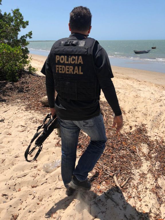 No interior da embarcação encalhada na última semana, os policiais federais encontraram,além da bandeira do Brasil, bandeiras de Trindad e Tobago e de Granada, países localizados na América Central, indicativo de práticas delitivas internacional.