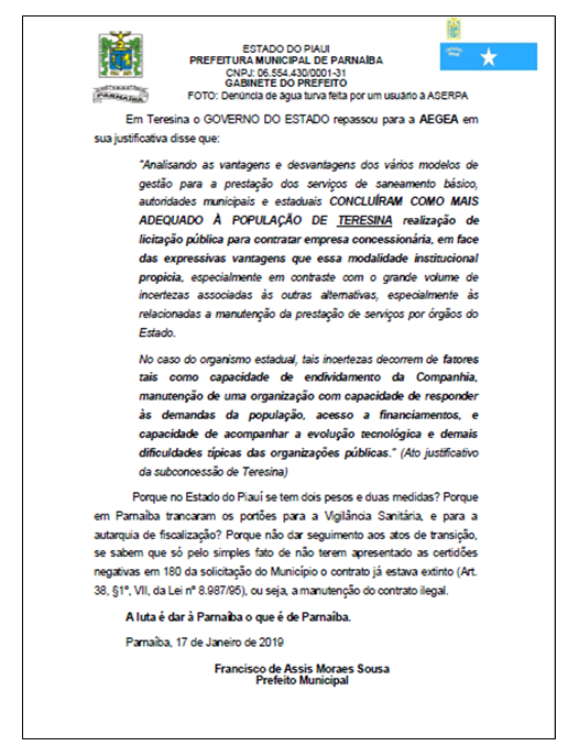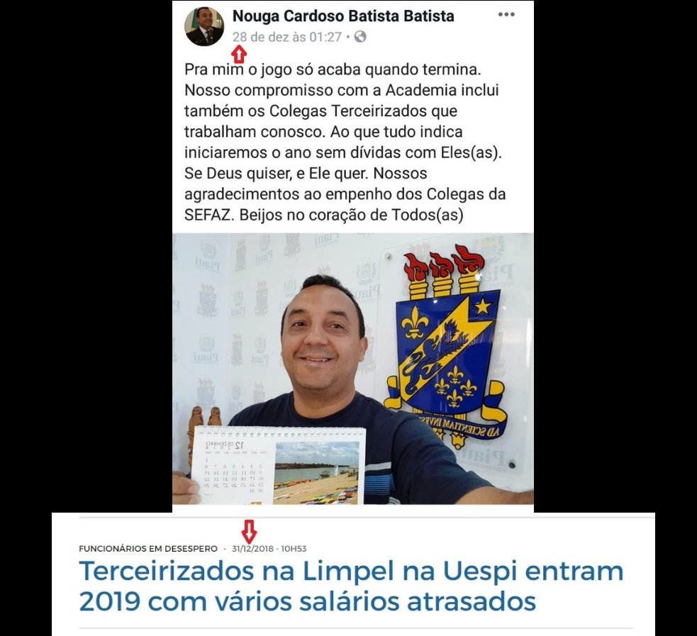 Neste “post” o reitor Nouga Batista deu sua posição sobre atrasos de salários dos terceirizados:”lavou as mãos”