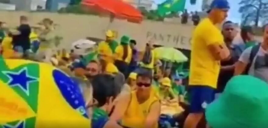 “Eu sou patriotário, ainda tou esperando a volta do Bolsonaro. Eu sou patriOtário, eu tô pagando mico por causa do Bolsonaro”, diz o vídeo, enquanto mostra imagens de bolsonaristas que contestam o resultado das eleições.