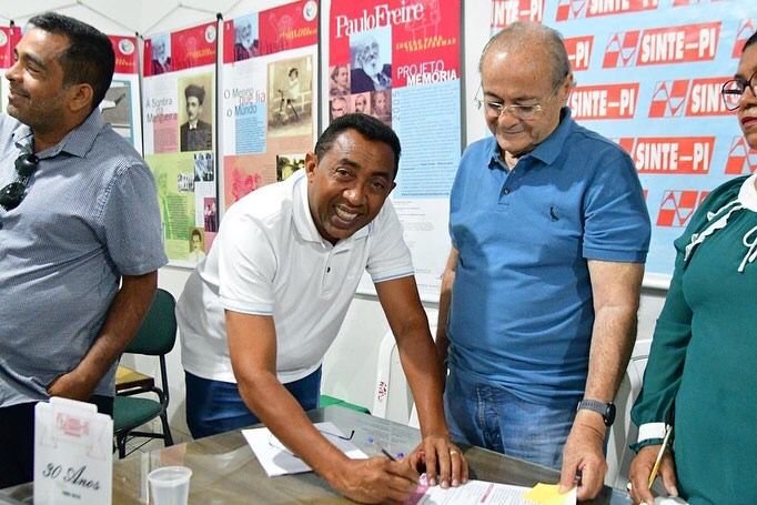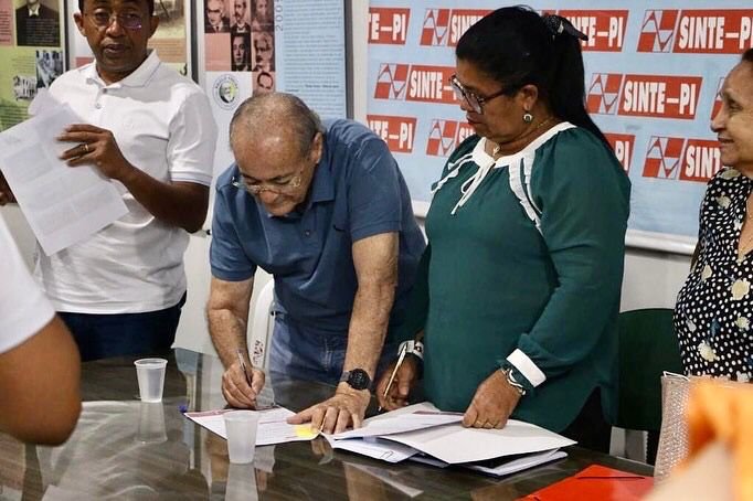 Os candidatos a governador Sílvio Mendes (União Brasil) e a senador Joel Rodrigues (Progressistas) assinaram, no fim da tarde desta terça-feira (13), uma carta-compromisso com um grupo de professores da rede pública estadual de ensino, alguns deles ligados à cúpula do Sinte (Sindicato dos Trabalhadores em Educação), e garantiram se empenhar para atender as reivindicações da categoria, que não estão sendo atendidas pela gestão do PT no Piauí desde que Wellington Dias era governador e Rafael Fonteles, secretário de Fazenda.