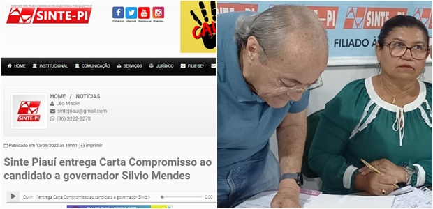 Candidato a governador do Piauí pelo União Brasil, Silvio Mendes assinou nesta terça-feira (13/09) uma ‘carta compromisso’ com o Sindicato dos Trabalhadores em Educação do Piauí. Mas o que chama a atenção é que, enquanto o Sinte-PI se alinha com a oposição, faz uma intensa campanha contra o Governo do Estado e o seu candidato, Rafael Fonteles (PT).