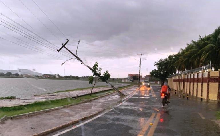 A chuva causou estragos, chegando a derrubar até postes da rede de energia elétrica na Orla do Açude, deixando a região sem energia por várias horas.