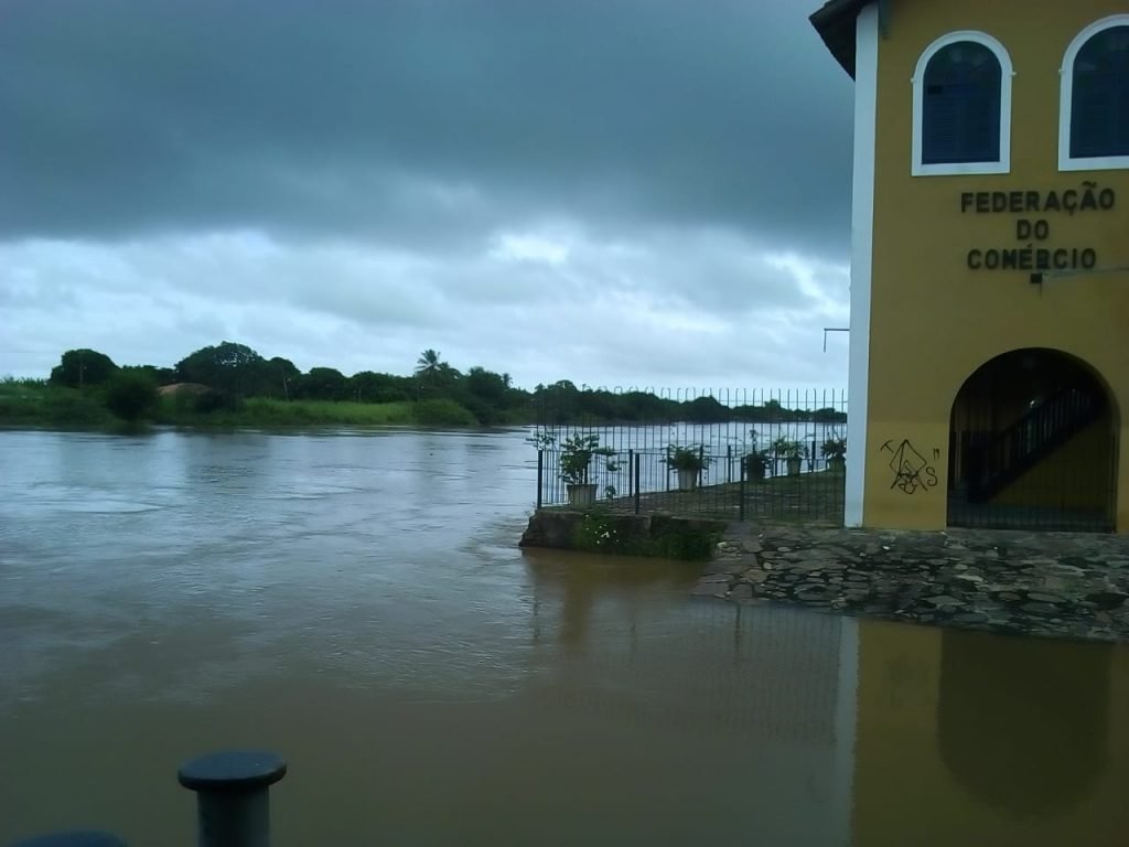 O rio Igaraçu, na região do Porto das Barcas na manhã desta quarta-feira apresentava volume de em crescimento com a água já quase alcançando a calçada da antiga alfandega, no prédio pertencente à Federação do Comércio. Fonte: Climatempo. Fotos: APM Notícias.