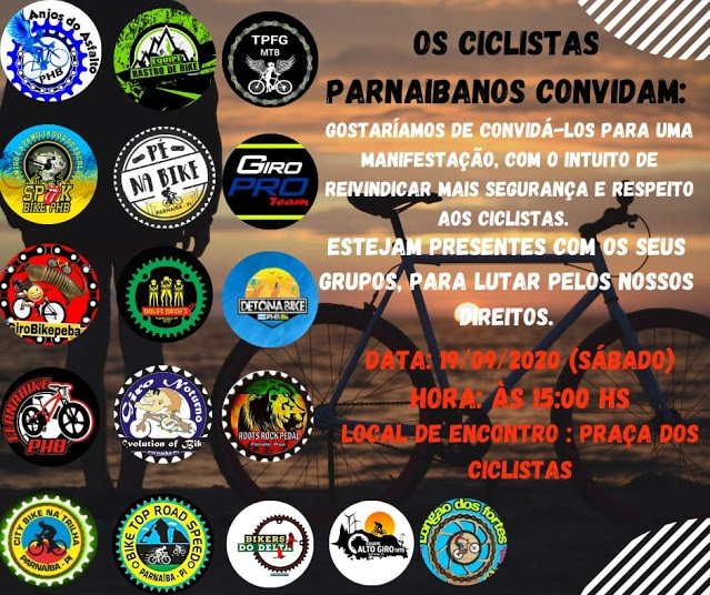 Diante do grande número de assaltos envolvendo ciclistas, os grupos de ciclismo de Parnaíba reunidos irão fazer uma manifestação pacífica neste sábado, no intuito de sensibilizar as autoridades e chamar à atenção dos órgãos de segurança para importância que o caso requer.